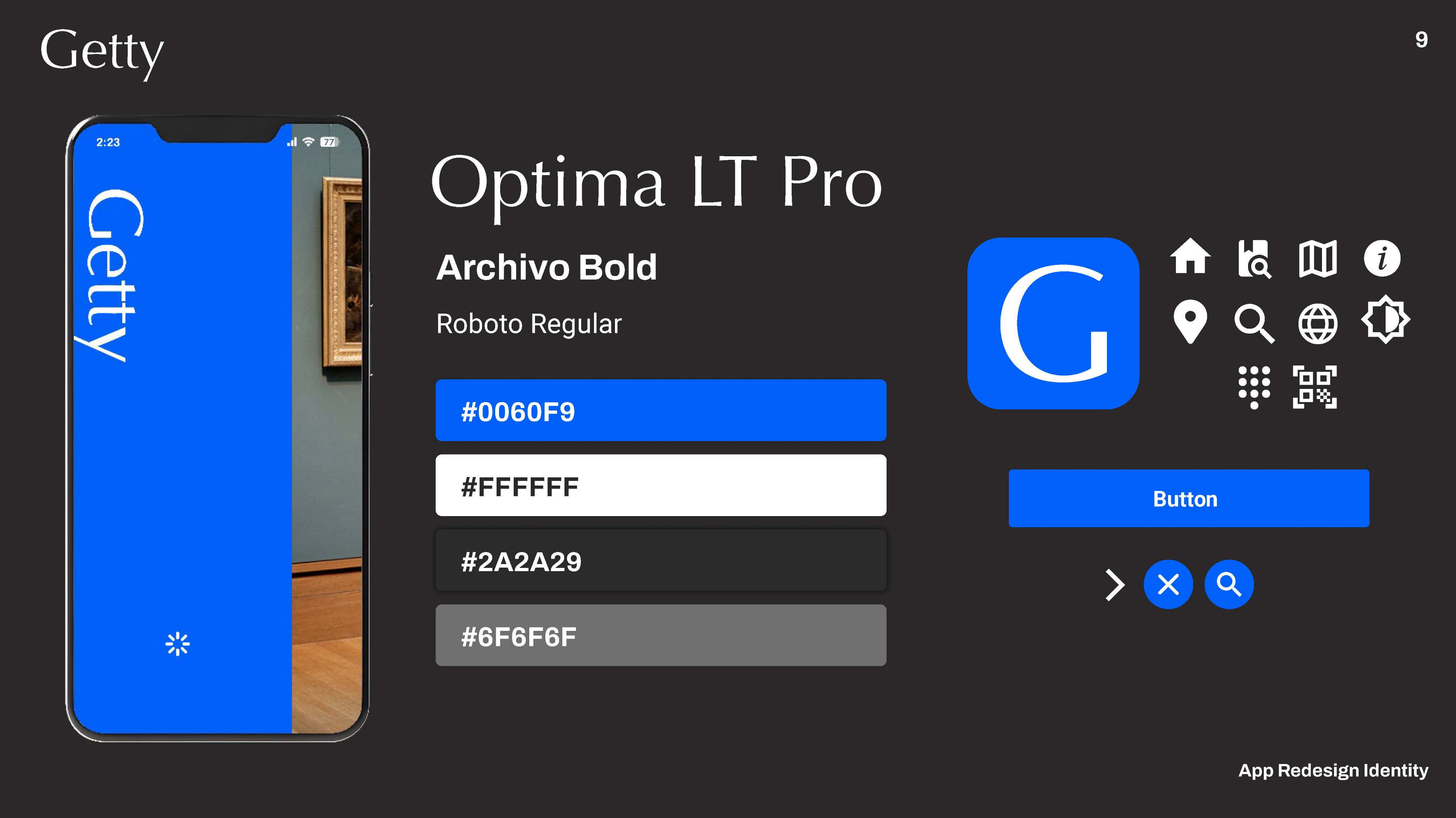 Our brand needed to represent Getty using their brand guides without all the extra information. We used google materials for iconography.